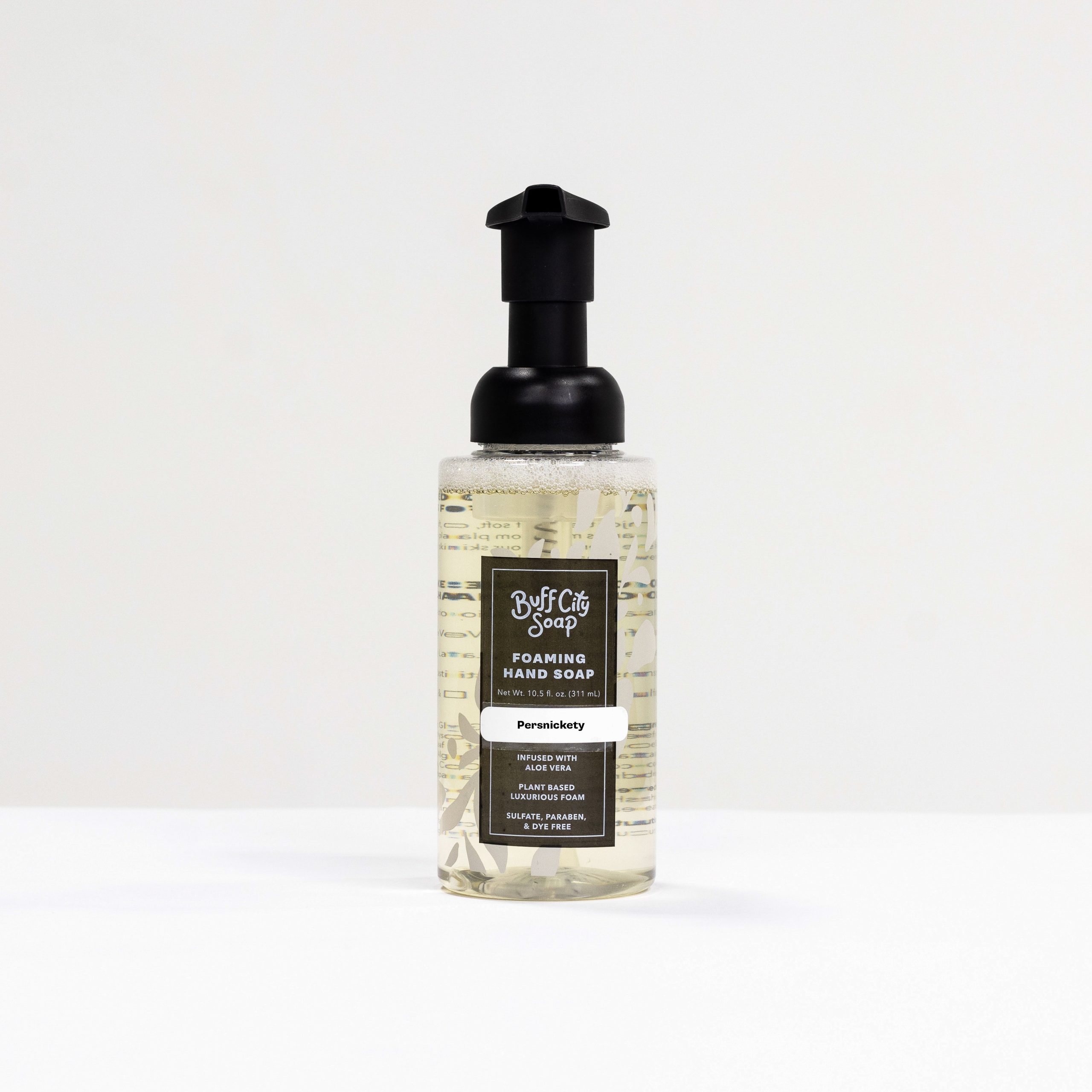 Persnickety Foaming Hand Soap Enjoy the feel of soft. clean hands with our Foaming Hand Soap. infused with aloe vera! This luxurious foam is dermatologist tested and gentle on your skin.