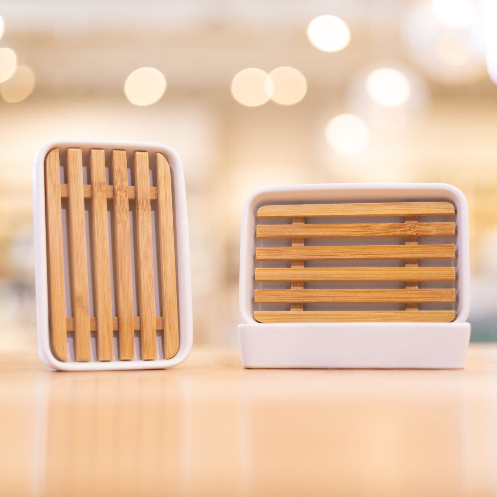White Porcelain and Bamboo Soap Dish